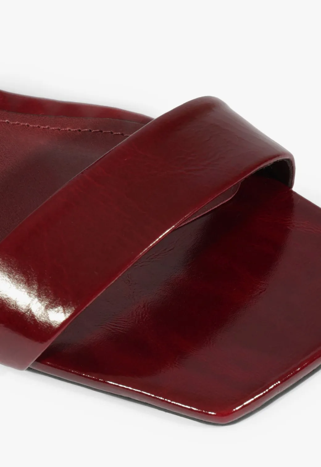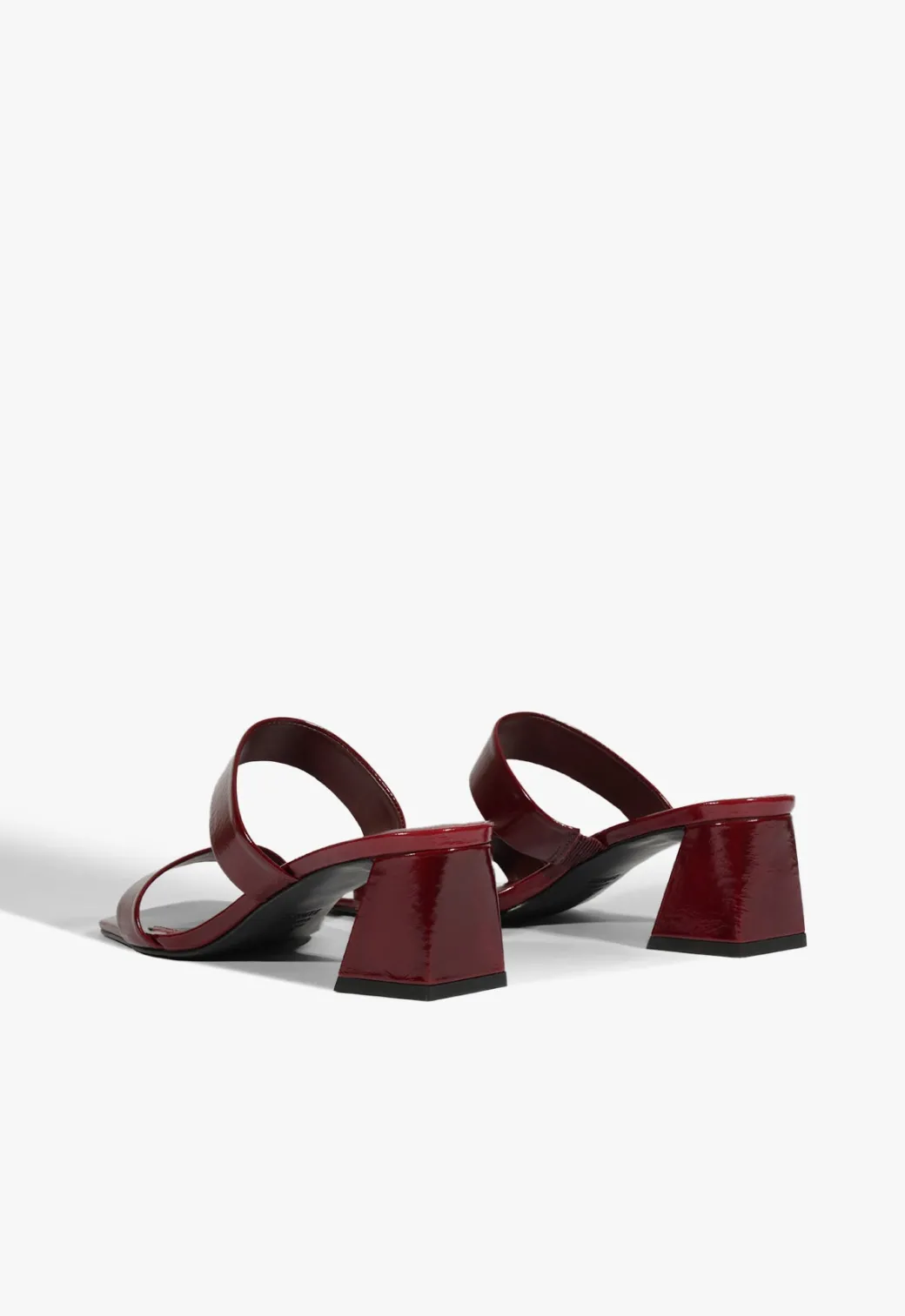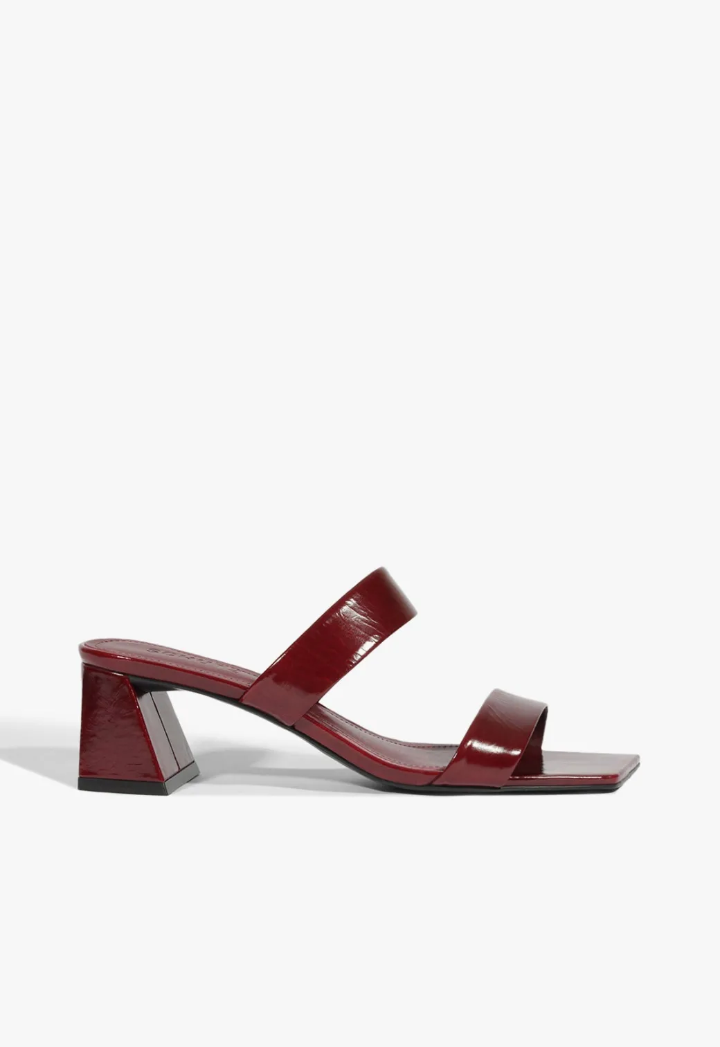 Polished but never predictable, these mid-heel sandals redefine sleekness. The sharp, angular mid-heel cuts through the noise, while the glossy patent finish commands attention. Double straps keep it locked in, offering just enough structure without sacrificing attitude. Understated yet unforgettable, they move with you from day to night—no second thoughts needed. Less talk, more impact.