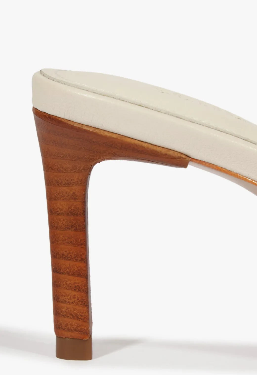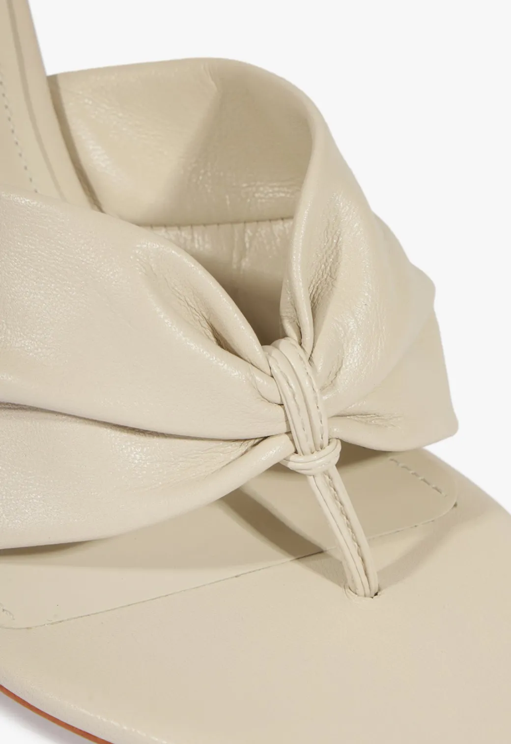 This fresh take on the Lori mule features a mid-heel for effortless wear. The knotted leather strap brings an undone attitude to this slip-on silhouette. A leafed toe sharpens the look, keeping it modern and refined. Designed for versatility, it pairs with everything from tailored trousers to denim. These are the sandals to reach for when you want something easy yet impactful for your day’s outfit.