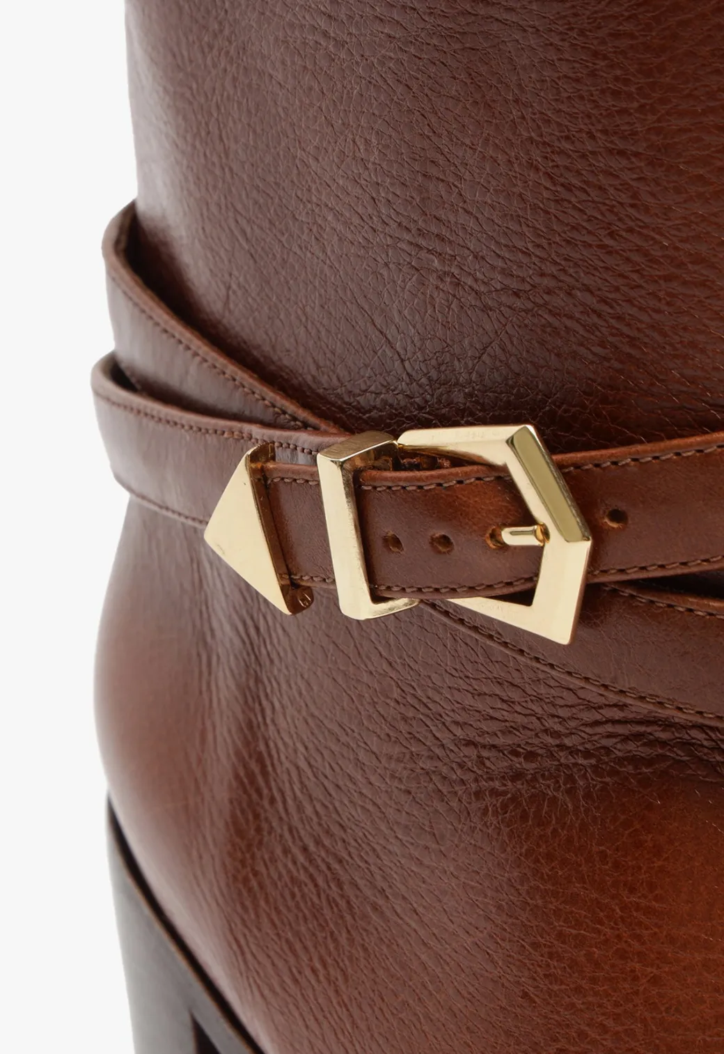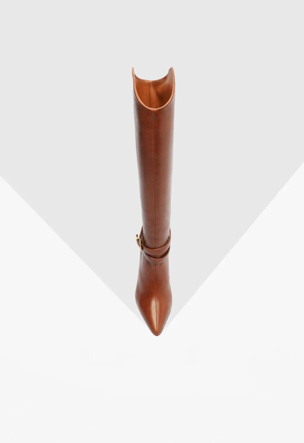 This knee-high version of the Maryana has a chic and sleek design, as it features a pointed toe and a mid block heel that adds a touch of sophistication and height without compromising your feet. The boots also have a decorative strap around the ankle, secured with a metallic buckle, which adds a stylish accent to the overall design. Lastly, the high shaft of the boots makes them ideal for pairing with dresses, skirts, or fitted pants, especially in cooler weather.