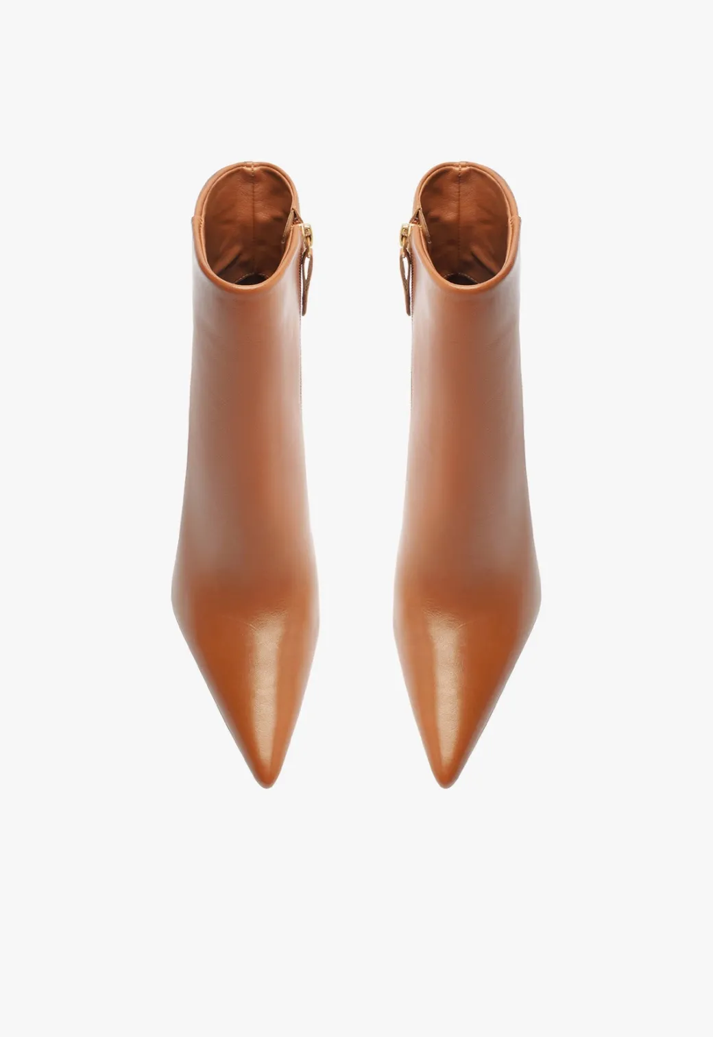 Slip into our classic Mikki Booties. Crafted from buttery leather and featuring a sleek pointed toe and high stiletto heel, these boots are here to incorporate modern chic vibes into your everyday look. Whether for work or a night out with the girls, the Mikkis will take your dresses, skirts, jeans, and other wardrobe pieces to new heights.