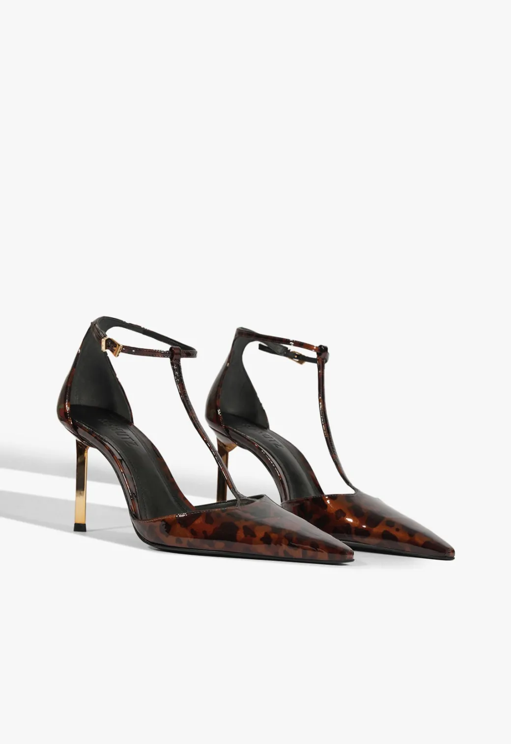 The Allure T pumps are your secret weapon for an unapologetic entrance. Razor-sharp details, a fierce gold stiletto, and a daring T-strap bring all the drama. Whether you’re stepping into a rooftop party or a high-stakes meeting, these heels do the talking. The glossy finish isn’t just for looks—it’s a statement. Stride with purpose and leave everyone speechless.