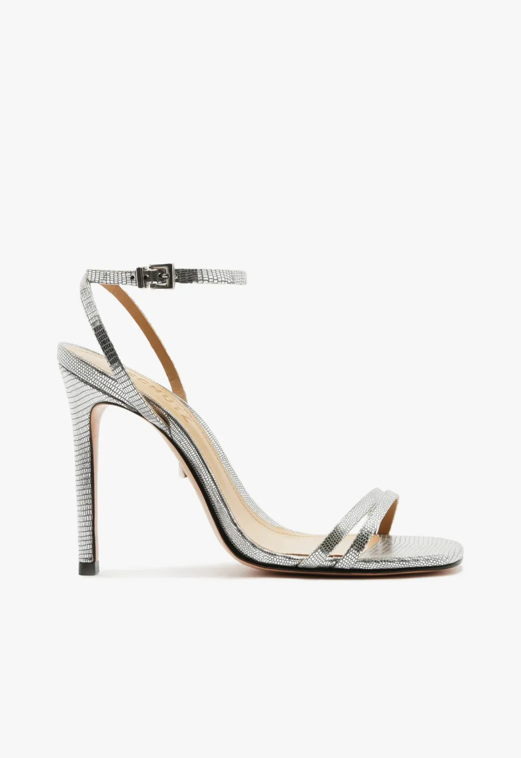 Discover the epitome of evening elegance: the Altina Sandal. Crafted in prime embossed leather, it boasts delicate barely-there straps, a customizable ankle strap, and a poised stiletto heel. Elevate your evenings with Altina’s refined allure.