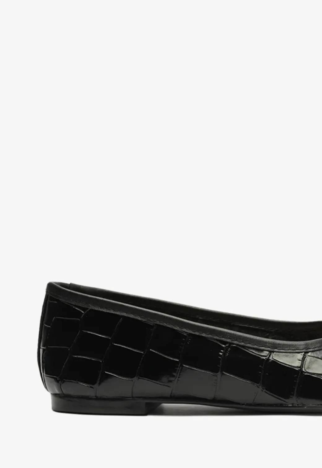 The Arissa Crocodile-Embossed Leather Flat is a fashionable and comfortable shoe for any occasion. Crafted from genuine crocodile-embossed leather, this comfortable flat features a stylish square toe and is perfect for day wear. Enjoy the look with this timeless design.