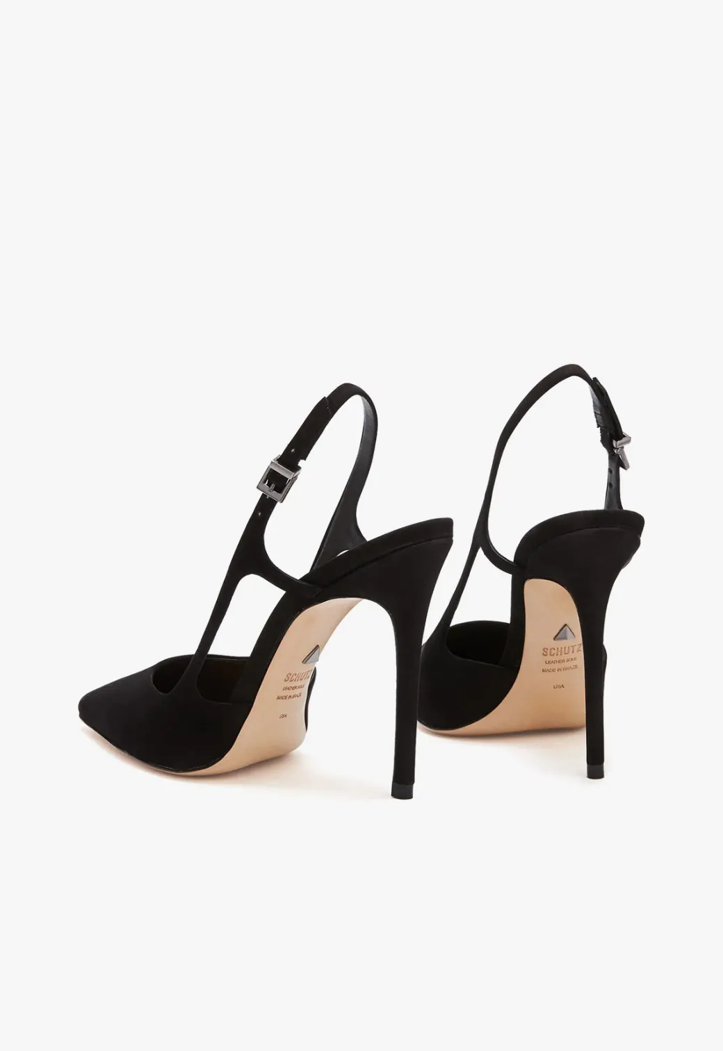 The high-heeled Boris slingback pump, expertly designed to make a statement. Impeccably crafted from premium nubuck, this resolute pump exudes both elegance and authority. Secured with a delicate yet impactful buckle closure at the ankle, it stands ready to redefine your stride with confidence and style.