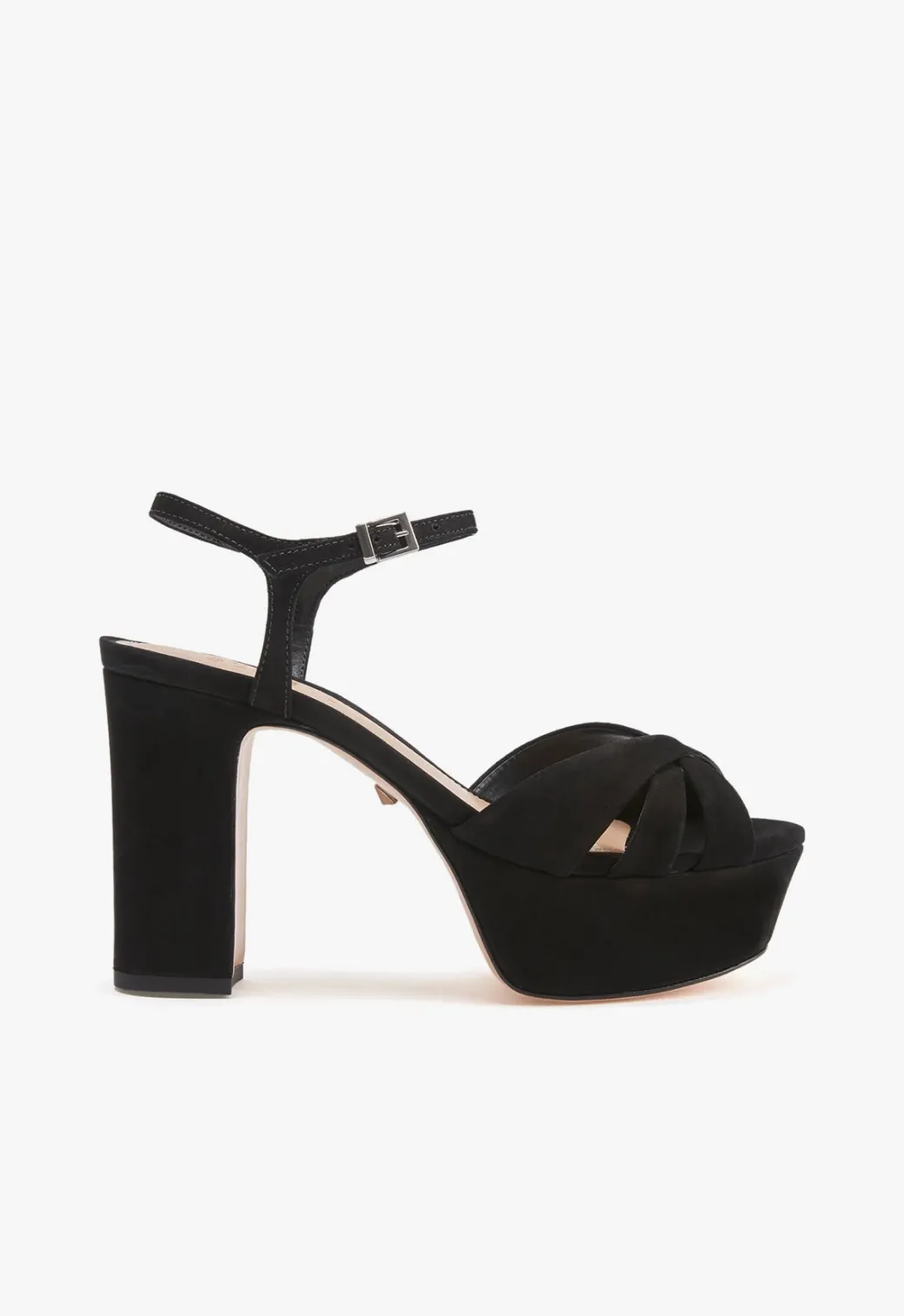 Experience mesmerizing disco glamour with the Keefa Sandal. Step out in style with the striking chunky high-heeled platform silhouette, enhanced by luxurious soft leather. Elevate your fashion with the elegant crisscross toe band, making this day-to-night sandal the epitome of chic sophistication.
