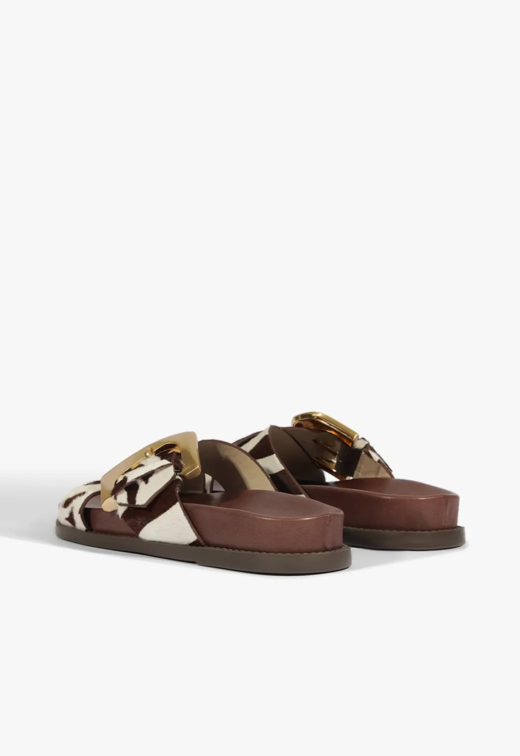 Designed for days that demand ease without sacrificing style, the Lois sandal pairs a structured silhouette with bold detailing. Wide leather straps crisscross over the foot, secured by a statement gold buckle that catches the light. The flat sole keeps things grounded while the luxe materials do the talking. Every step with a pair of Lois’ says, “I’ve got this.”