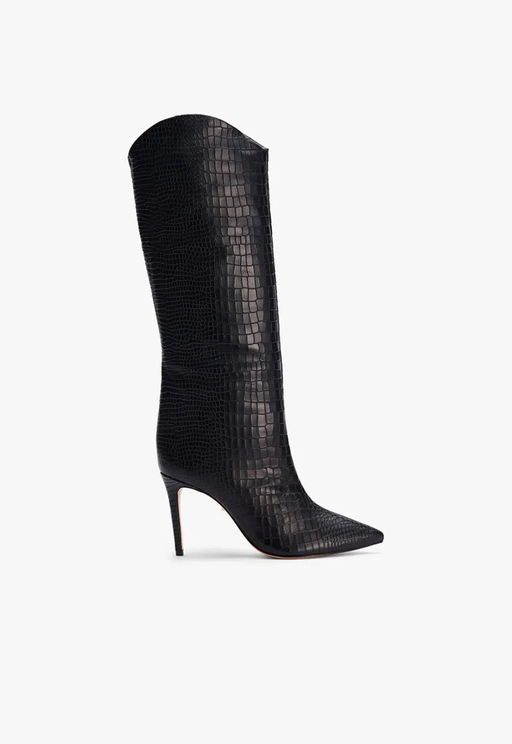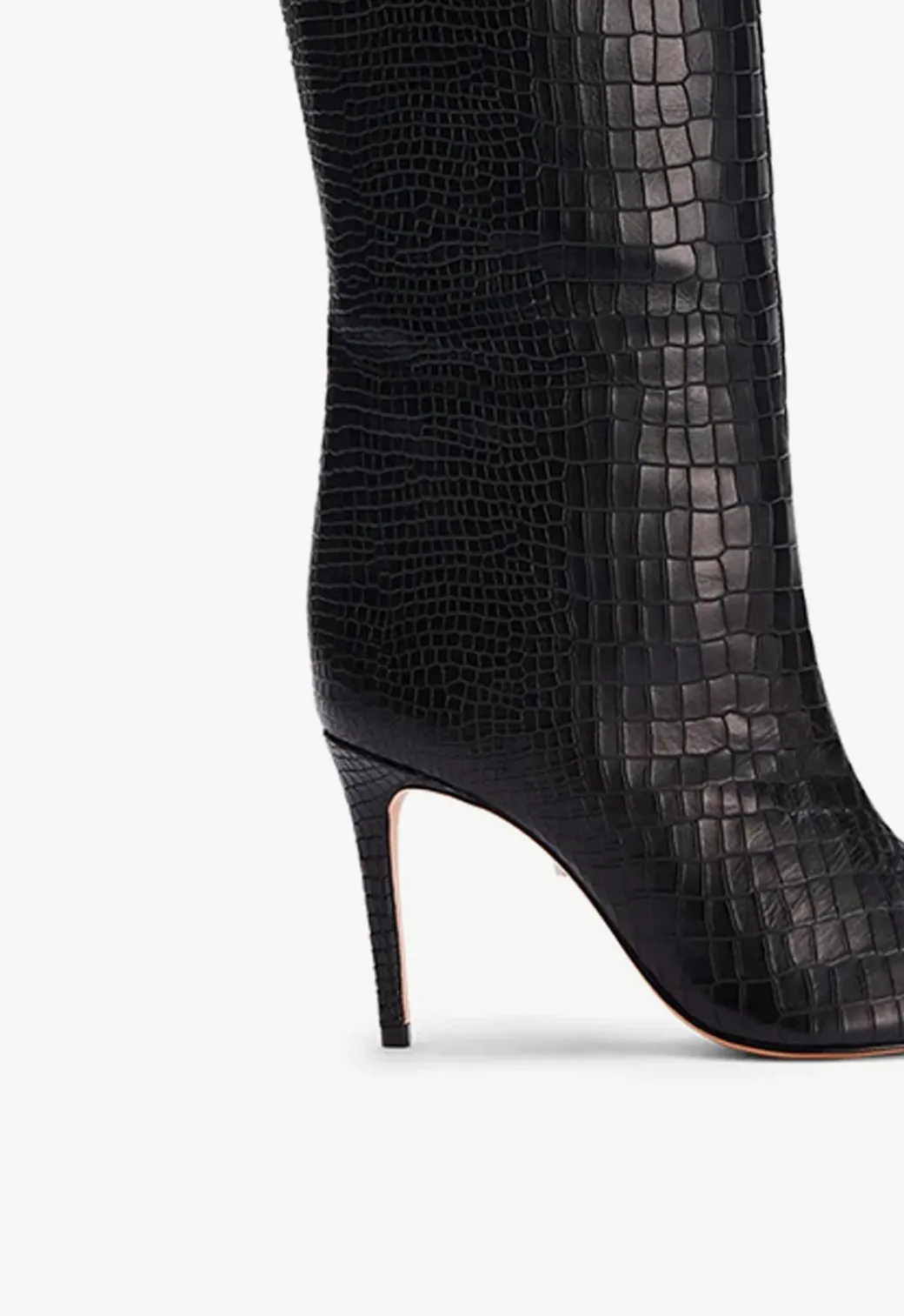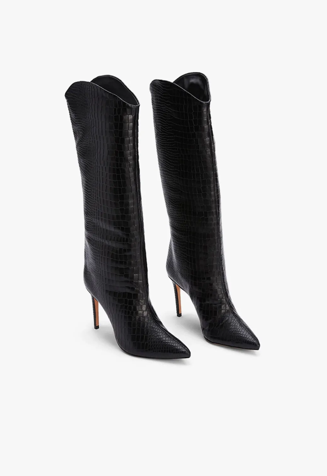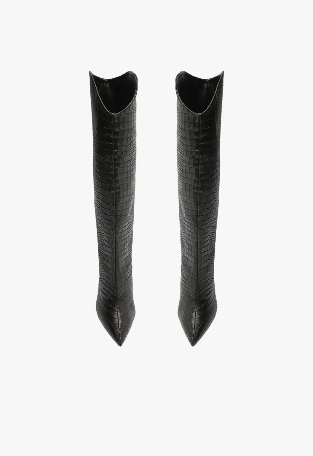 Experience the iconic Maryana knee boot – a sleek and stylish choice crafted from luxurious crocodile-embossed leather. This versatile and trendy boot effortlessly complements your entire wardrobe, seamlessly pairing with jeans or elegant dresses. Elevate your fashion game with the timeless allure of Maryana’s renowned design.