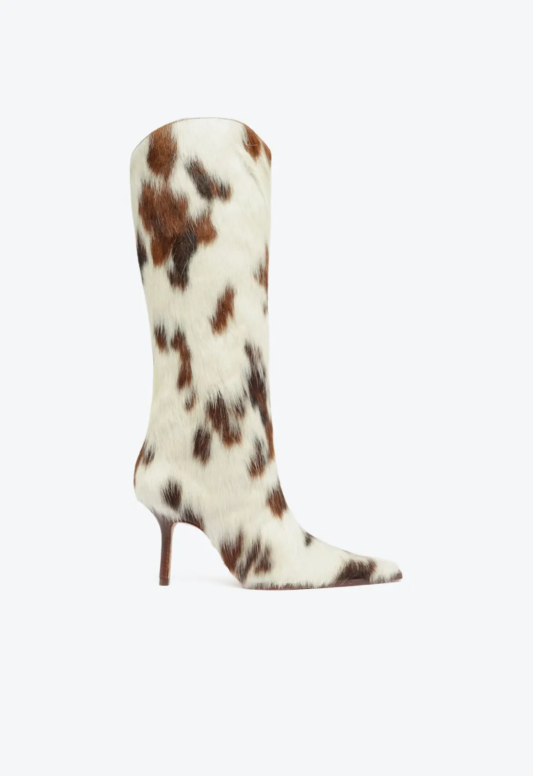 Our bestselling Maryana is now available in a calf hair print, featuring its iconic silhouette and slender stiletto. This version of the Schutz girl’s favorite boot gives a denim jacket and little black dress ensemble the perfect finishing touch.