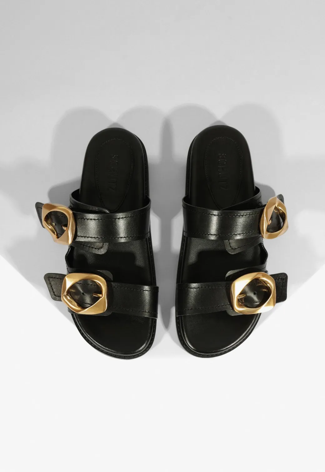 Unbuckle the cool with the Olga sandals; they prove that casual doesn’t mean boring. Luxe gold hardware gives these easy slides an unexpected twist. Wear them with joggers, cutoffs, or a slip dress because they play well with everything as they aren’t your ordinary, easy-to-wear pair of sandals.